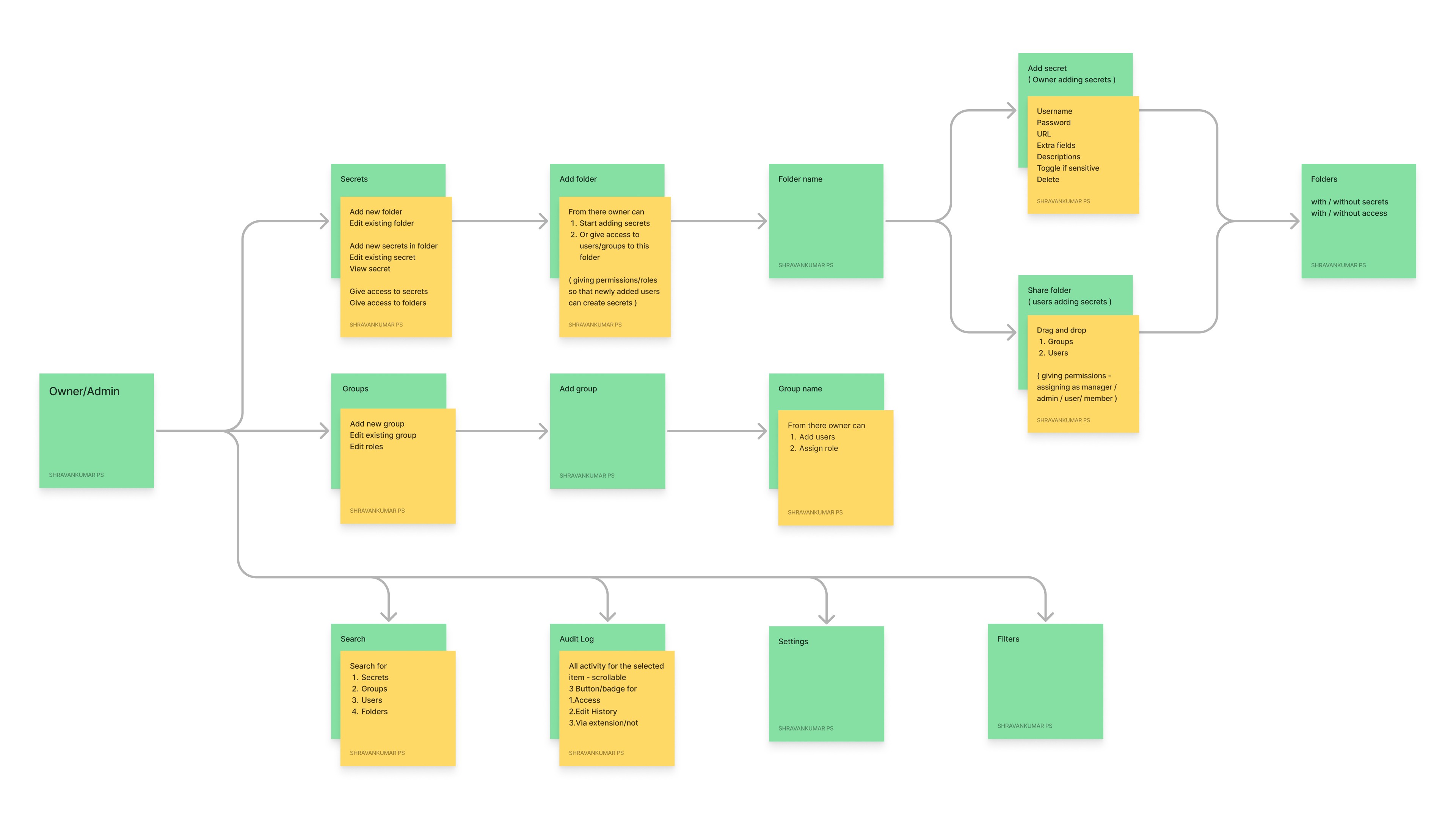 Built dashboard with folders/groups for credential categories (usernames, API keys, SSL secrets etc).